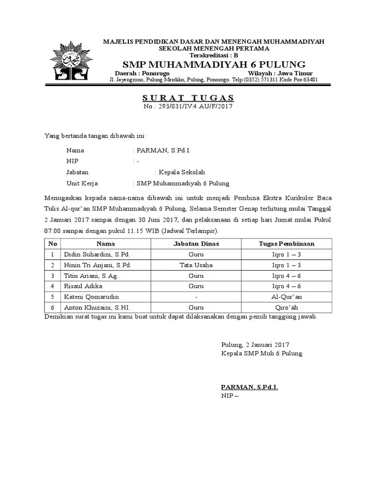 Tim sepak bola smp muhammadiyah 3 medan. Contoh materi terkait bimbingan klasikal yang pernah dilakukan di smp. Lampiran 20 surat balasan riset. Surat pernyataan jumlah siswa dan guru. Kepala smp muhammadiyah 1 prambanan daswati rofiatun sahifah, s.t., m.pd terpilih sebagai kepala sekolah inspiratif versi kemendikbud. Raya cengkeh nan xx komplek kehamkiman padang. Smp muhammadiyah 1 program khusus gatak 2 blora smp muhammadiyah serpong sk pdm tebaik contoh kop surat . Nice contoh kop surat smk muhammadiyah 35 untuk ide format kop doc kop. Contoh post pengumuman sekolah, pengumuman pertama. Contoh kop resmi sekolah program khusus by ahimza0fatih. 10 contoh surat pernyataan terbaru. Dokumen wakil kepala sekolah urusan bidang kurikulum smp muhammadiyah 1 gamping.