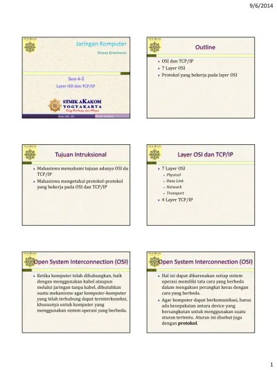 "upper layer" dan "lower layer". Terdapat 7 layer pada model osi yang bertanggung jawab secara khusus pada proses komunikasi data. Model ini disebut juga dengan model model tujuh lapis osi (osi seven layer model). Osi layer jadi istilah yang tak terlalu akrab tetapi sering kita gunakan tanpa sadar. Sebelum munculnya model referensi osi, sistem jaringan komputer sangat .